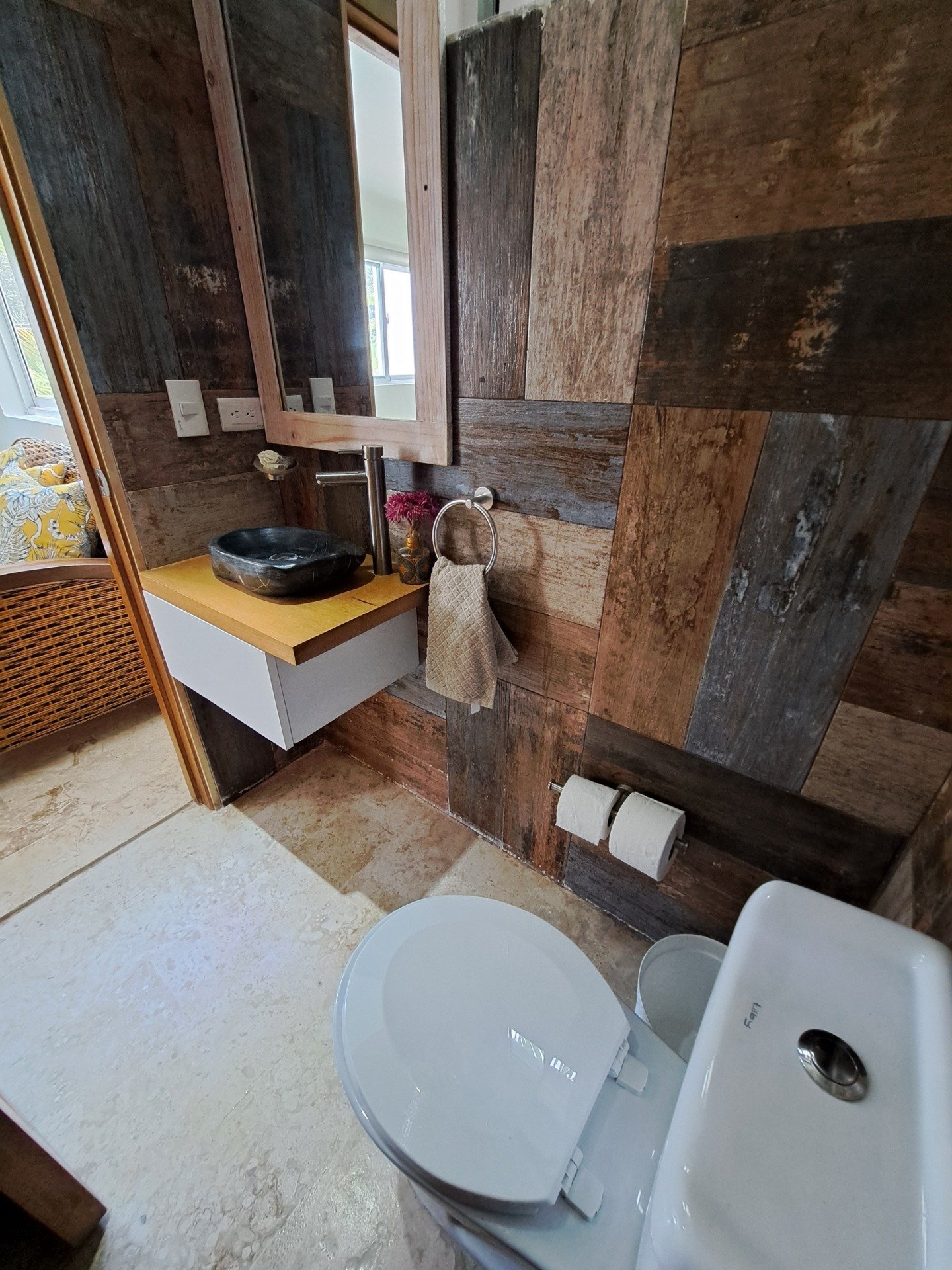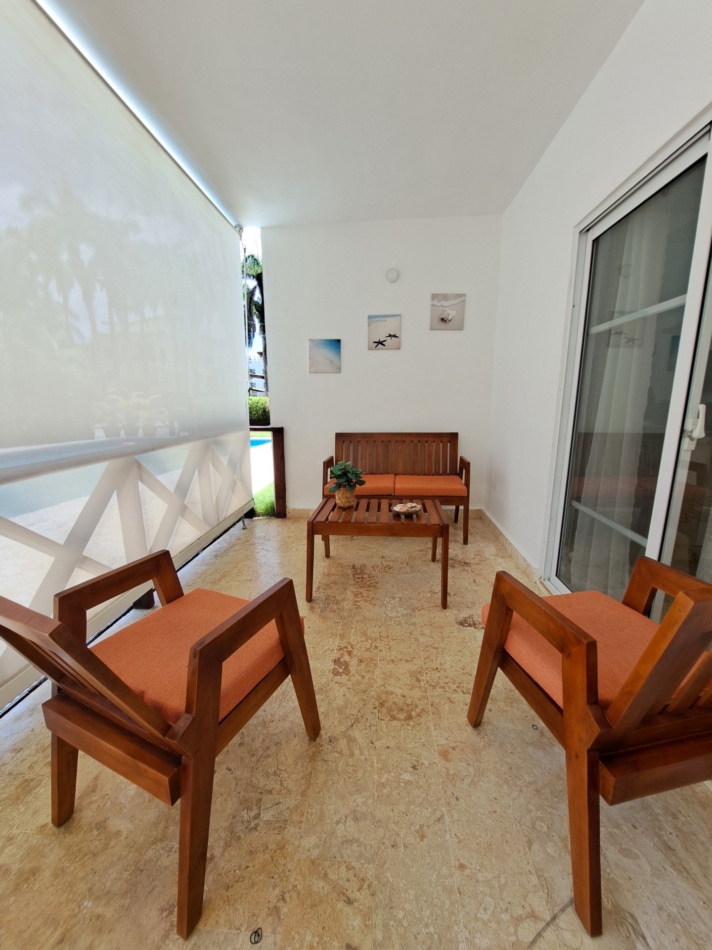 - Private terrace with cozy seating area — ideal for morning coffee or relaxing after the beach