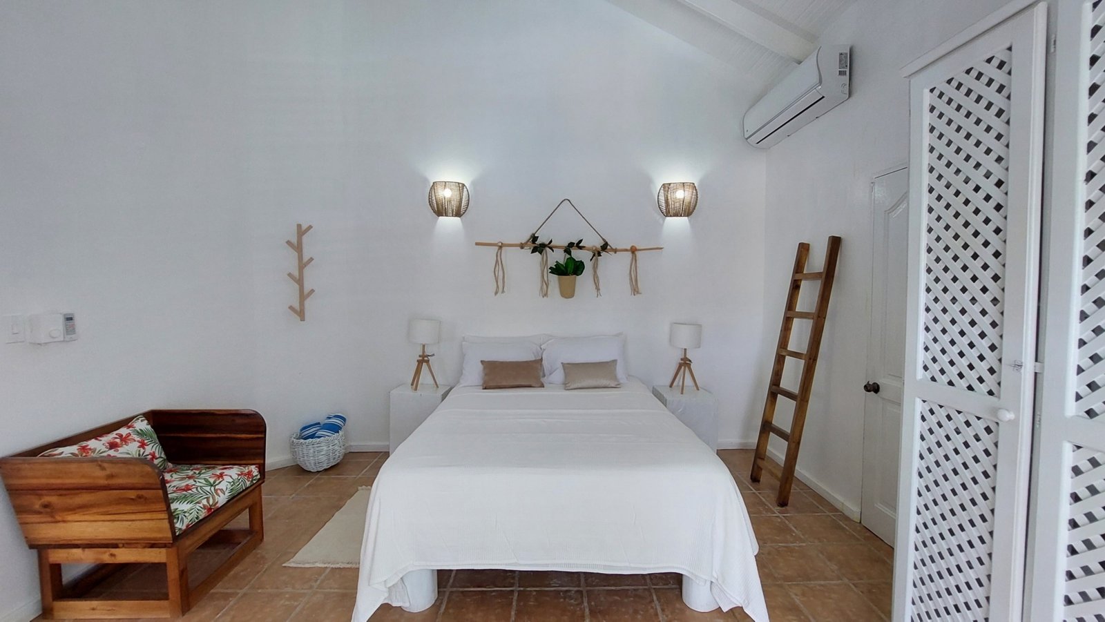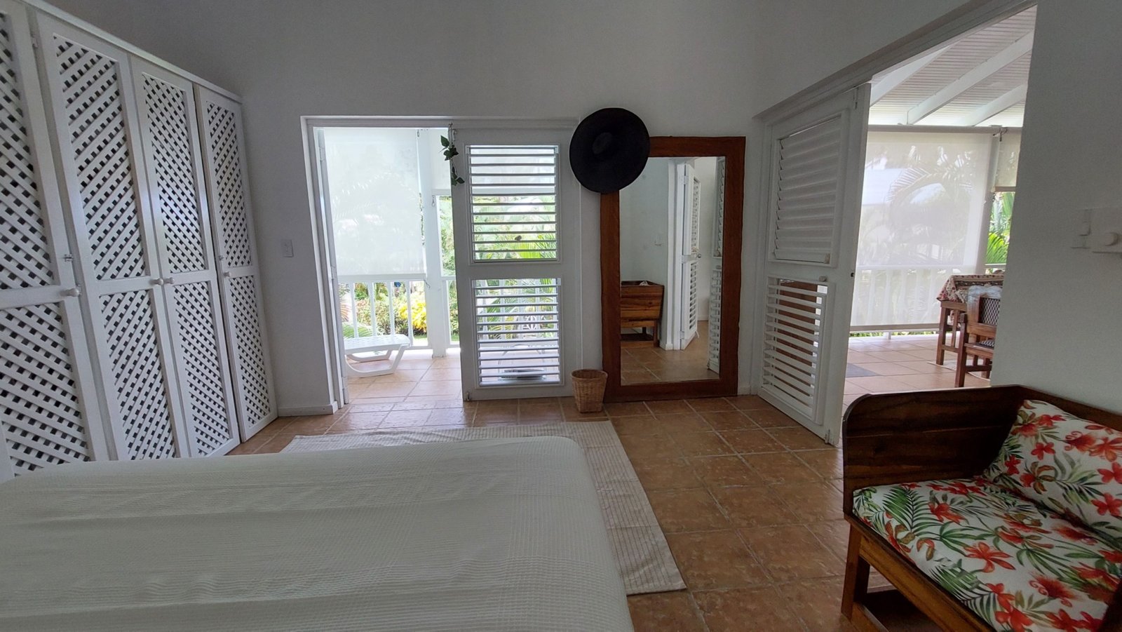 • Bedroom 1: Queen bed, A/C, ceiling fan, private bathroom, large closet, screened windows