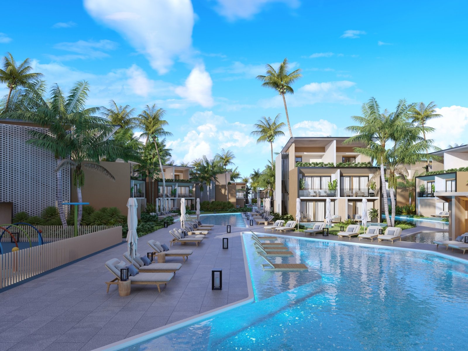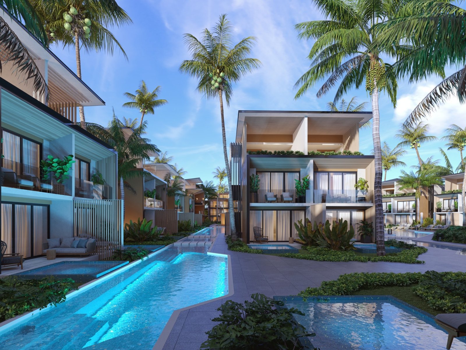 Built on approximately 20,900 m² of prime beachfront land, the project features 89 residences, including oceanfront villas, townhouses, and modern apartments, all surrounded by lush tropical landscaping and resort-style amenities.