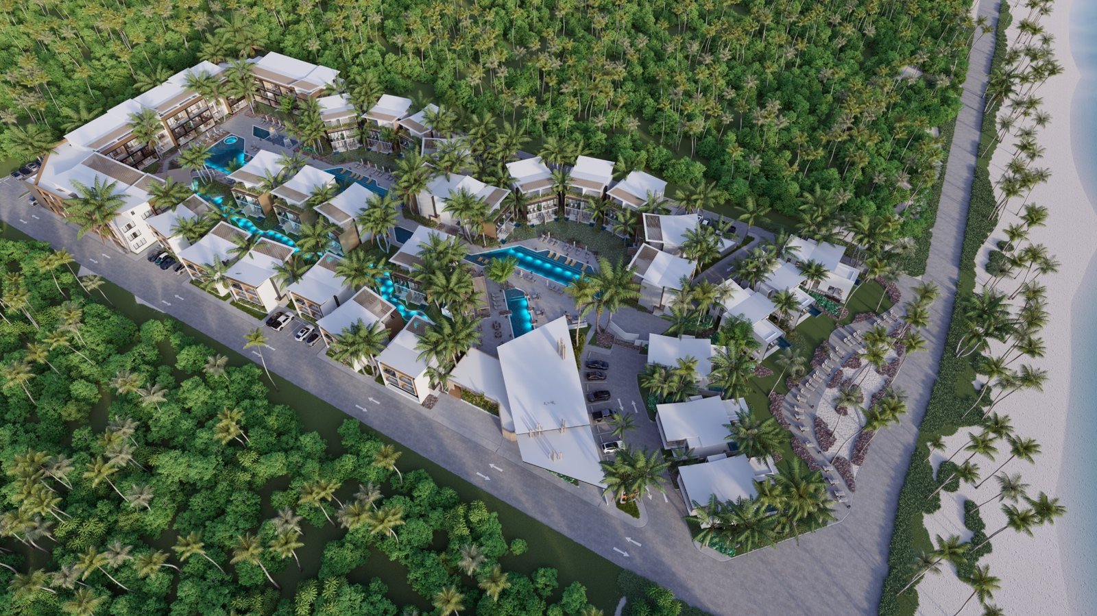 Situated directly on the beachfront in one of the most desirable areas of Las Terrenas, these elegant villas combine modern architecture, privacy, and resort-style amenities within a beautifully landscaped community.