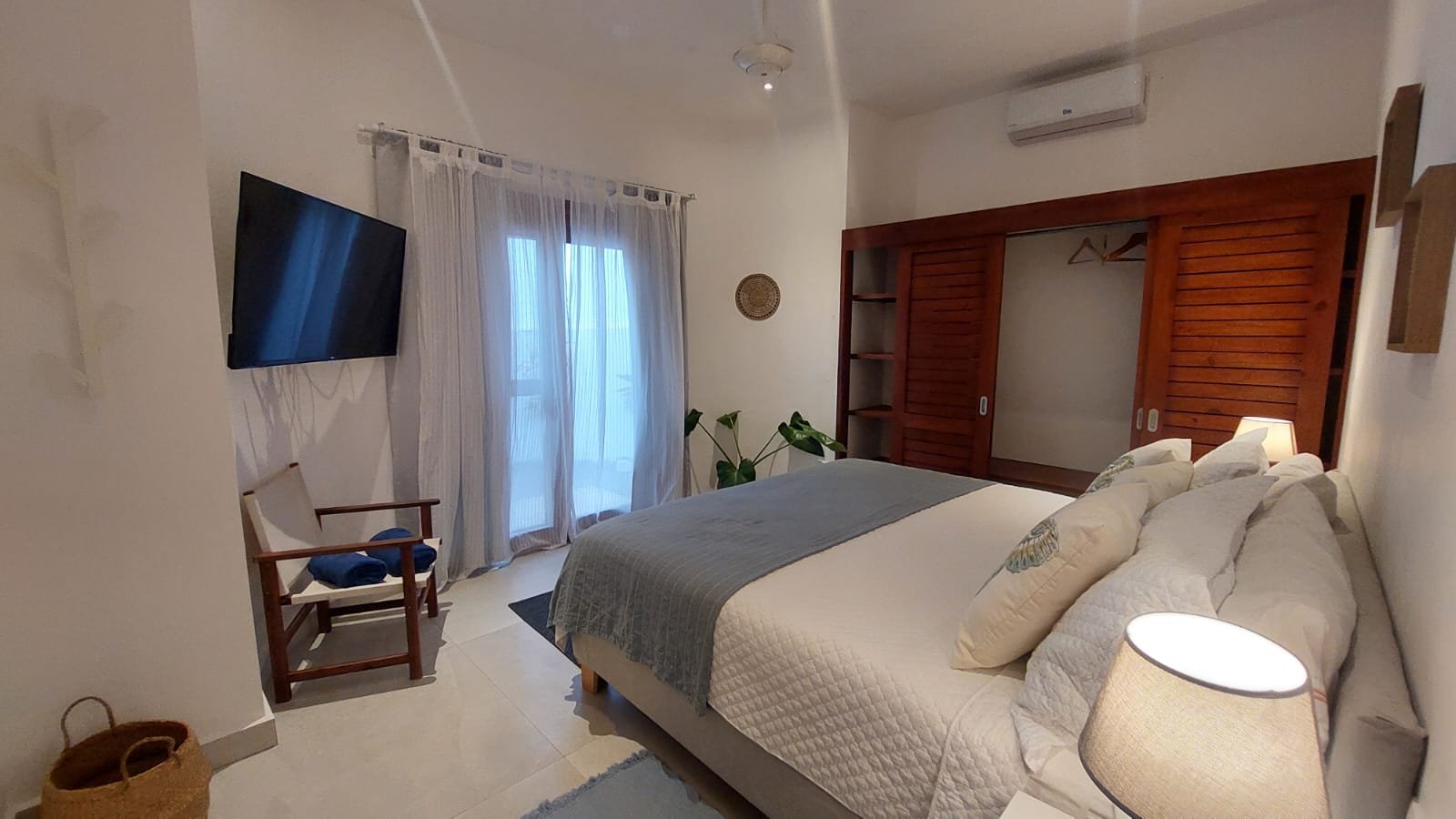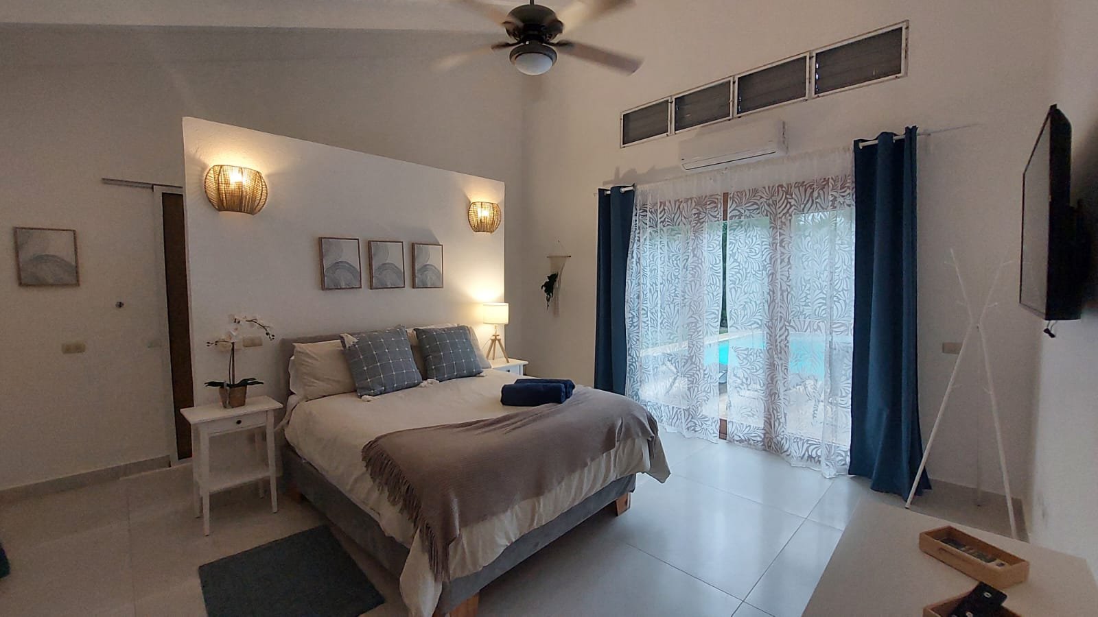 The villa includes 5 air-conditioned bedrooms, each with: