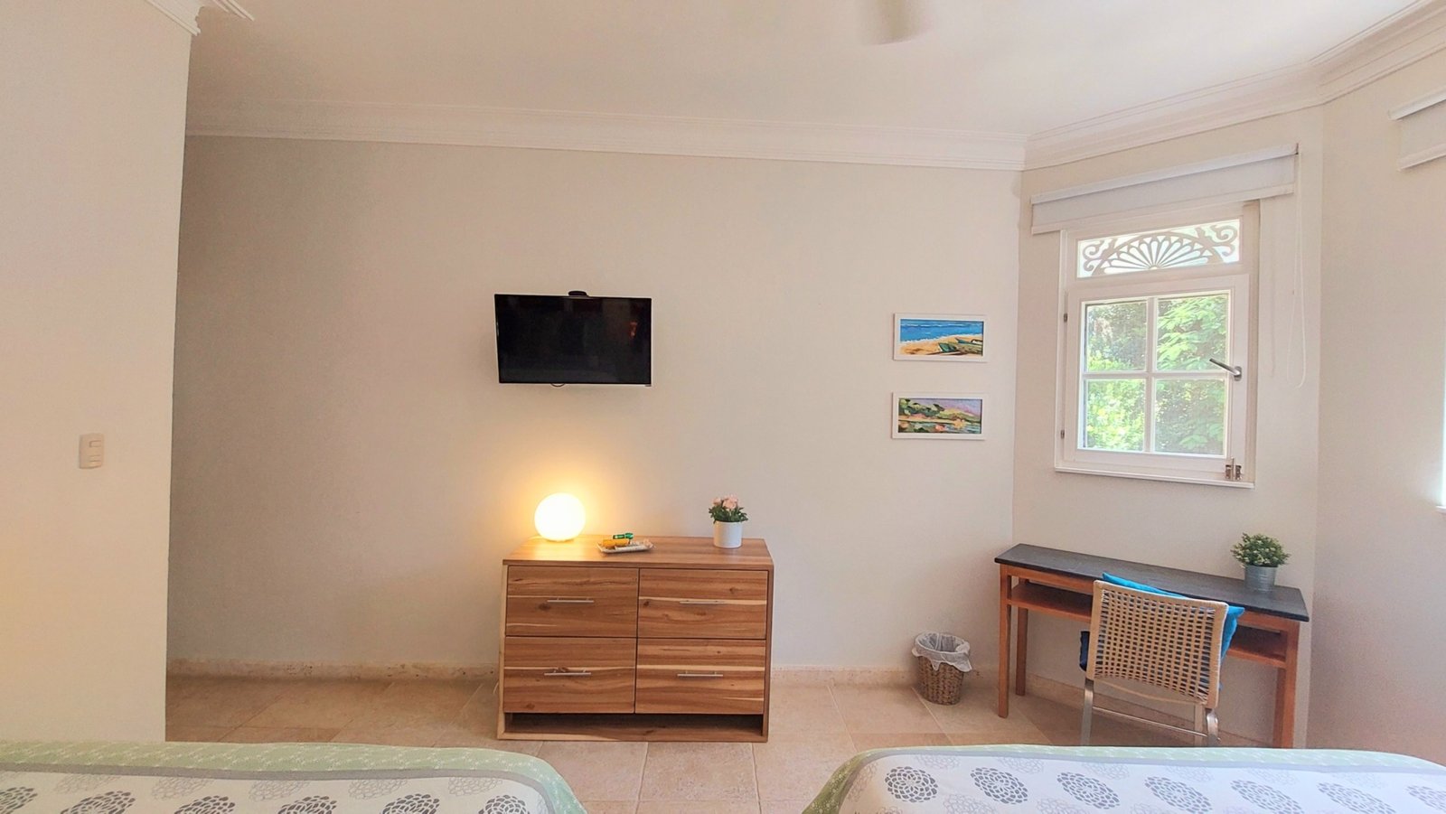 - Large private terrace with views of the beach, palm trees, tropical gardens, and the pool just steps awayThe condo comfortably sleeps up to 6 guests, making it ideal for families, couples, or small groups seeking a stylish and comfortable stay in Las Terrenas.